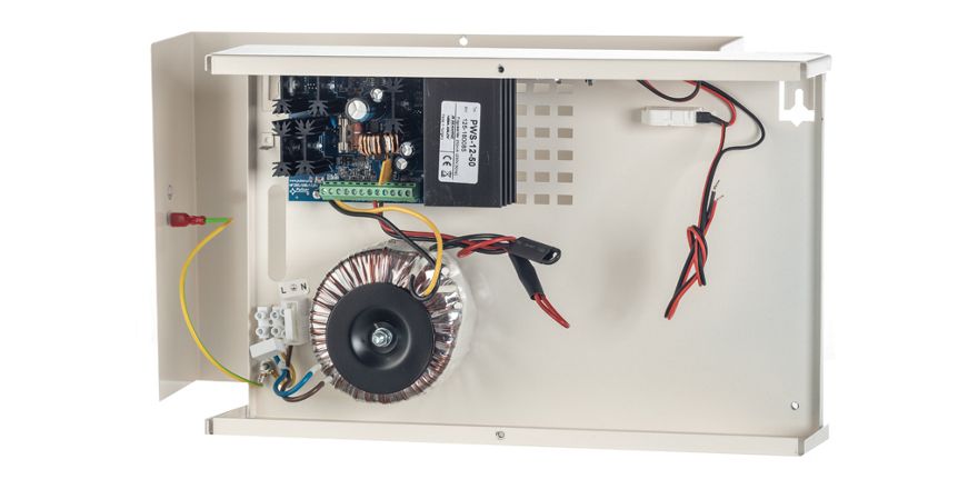 The uninterruptible, stabilized power supply type PWS-12-50 has been developed for safety systems requiring a nominal voltage of 12 VDC. It has a linear, built-in, safe toroidal isolating transformer.
